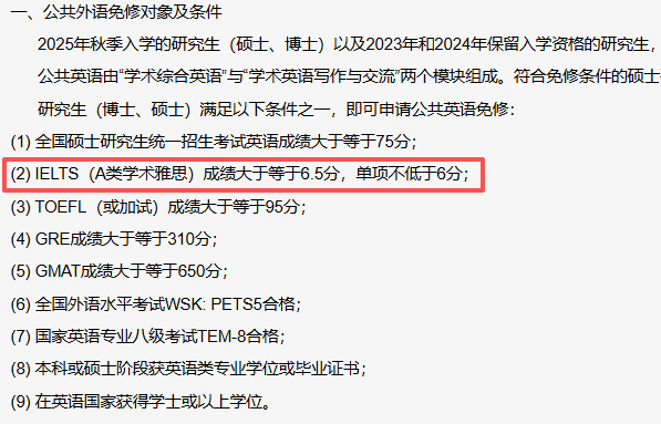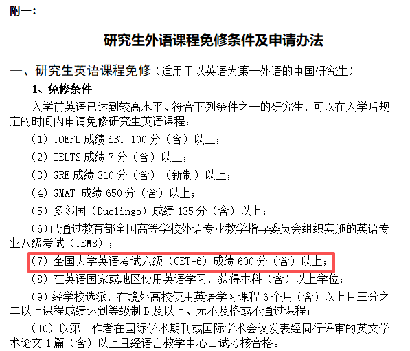 清华大学研究生英语免修资格,要求六级*需达到600分及以上;