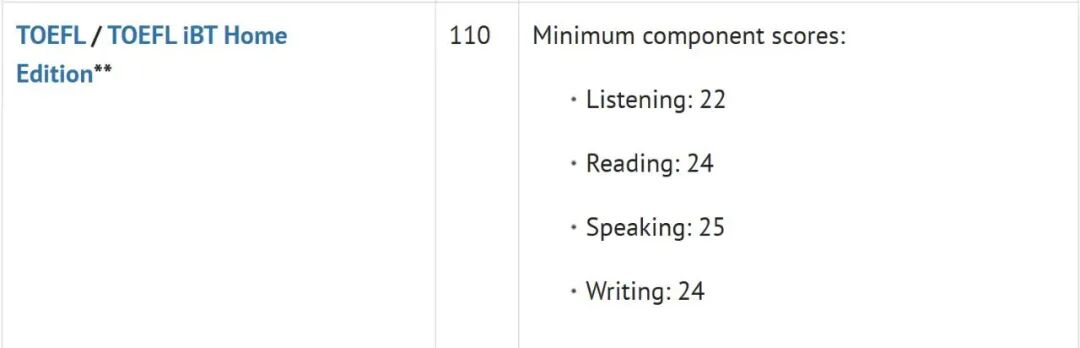 2025年12月31日前取得的托福*仍被认可,但分数要求更高,需总分不低于110分,且四项单项分数均不低于25分,其研究生阶段暂未同步该政策,但不排除后续调整的可能。