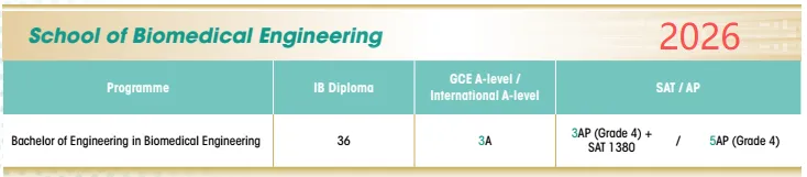 核心*要求:A-Level 3A;IB 32-34 分;SAT/AP 为3门AP(3 分)+SAT1380,或5门AP(3 分)