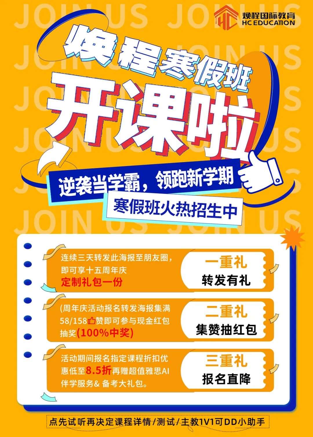 寒假弯道超车!焕程雅思寒假班重磅来袭!带你冲高分
