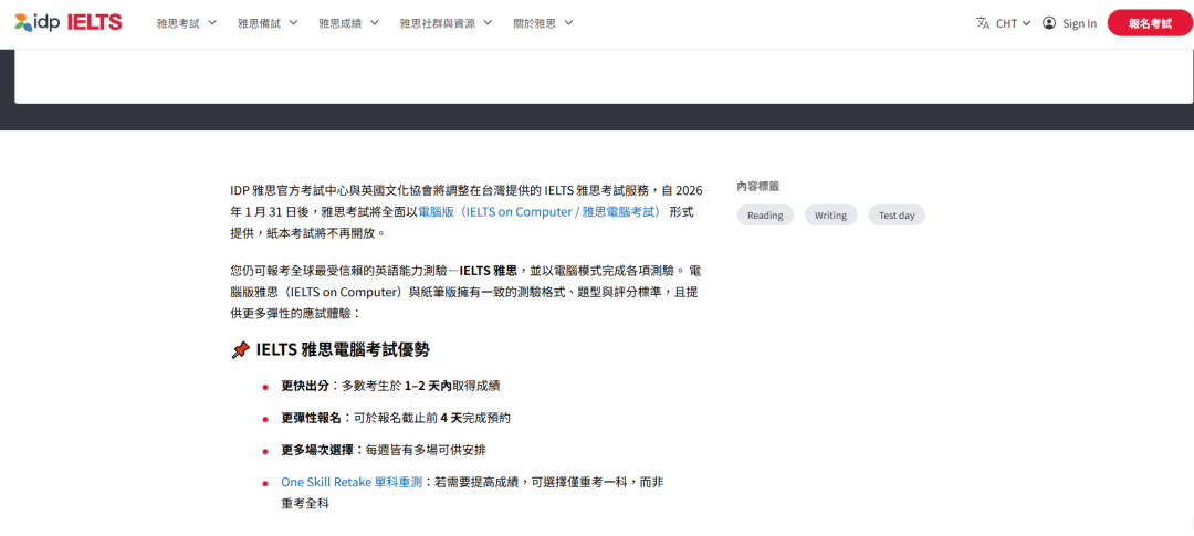 中国台湾雅思官方突发官宣:2026年1月31日起,全面取消雅思纸笔考试,所有考试统一转为电脑机考!目前官网虽暂留双考种选项,但转型已成定局,习惯手写答题的考生仅剩不足2个月适应期!