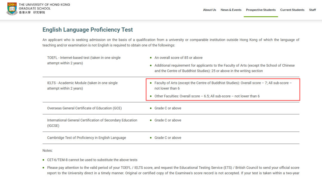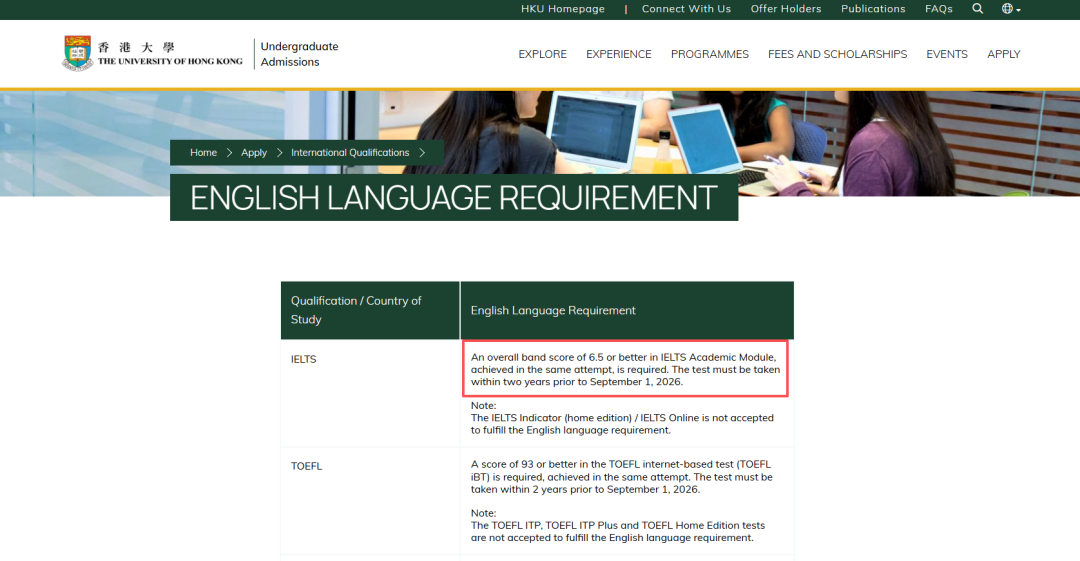 语言能力是港大申请的核心门槛,本科与研究生阶段要求有明确区分,热门专业普遍提高标准,同时适配不同申请路径的语言证明需求,具体要求如下。