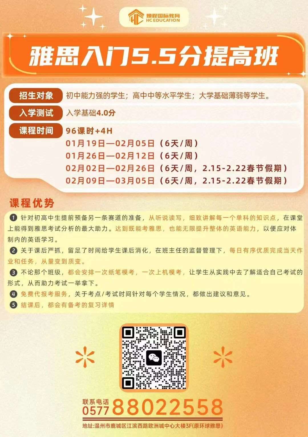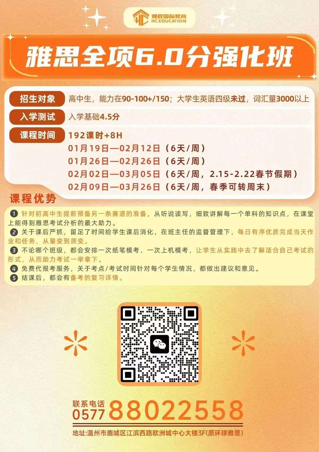 寒假正是集中突破雅思的黄金期,温州焕程国际教育为你量身打造雅思寒假集训课程,从基础到高分,一站式解决你的备考难题。