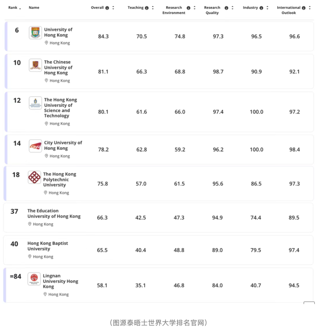 ✅ 港澳史诗级突破:香港 8 所公立高校全员跻身亚洲百强,史上