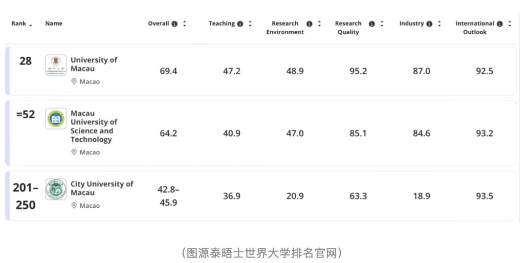 澳门大学:亚洲第 28 位,建校以来闯入亚洲前 30,历史性突破 澳门科技大学:亚洲第 52 位,综合实力稳步上升 澳门城市大学:正式登榜 THE 亚洲排名